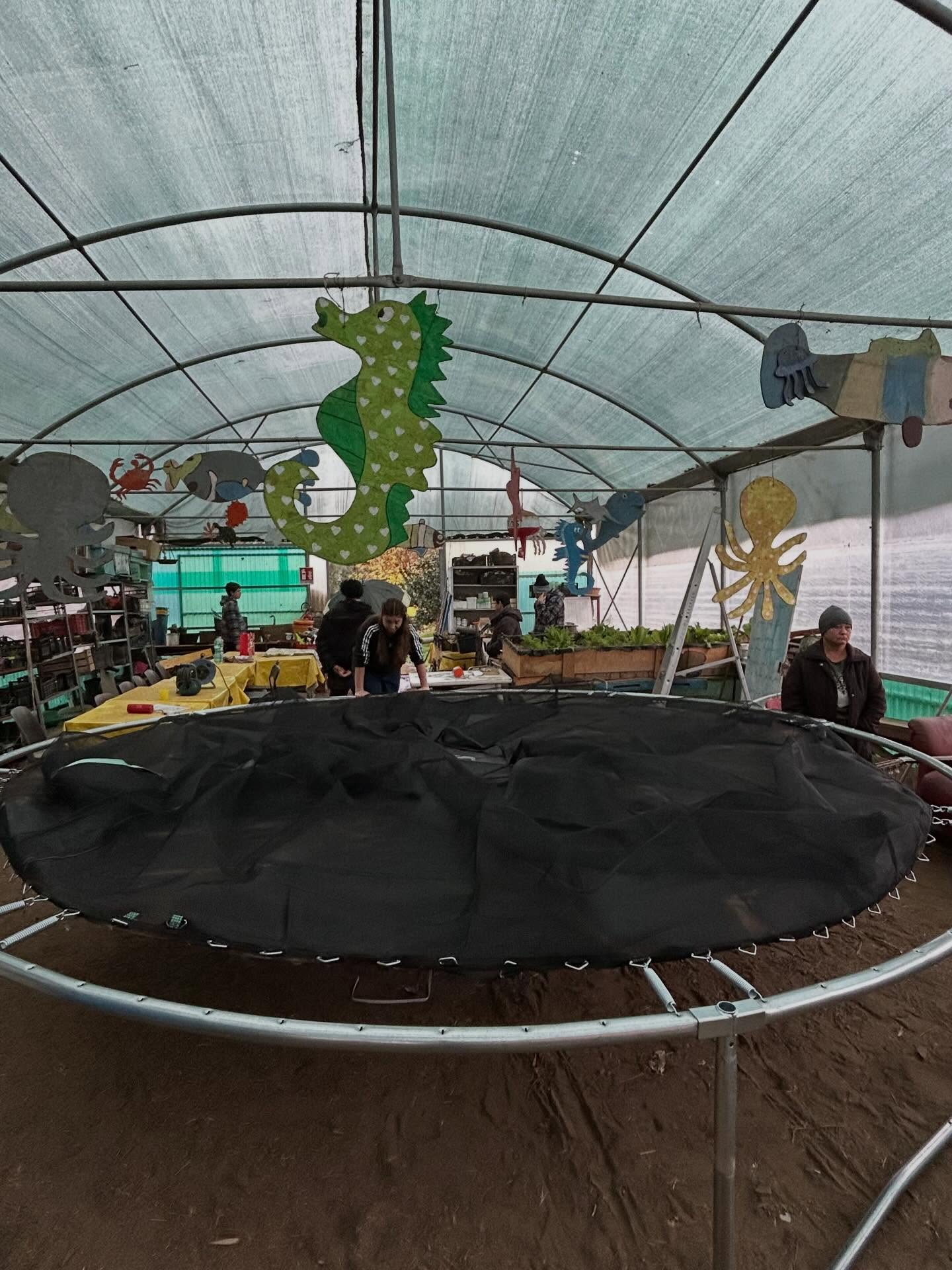 È arrivato un super regalo: un trampolino (salta-salta) nuovo